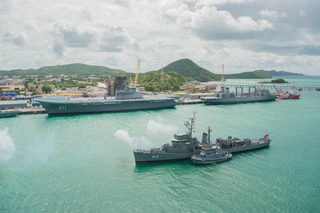 เรือหลวงปิ่นเกล้า ยิงสลุตครั้งสุดท้าย ในพิธีรับ-ส่งหน้าที่ ผบ.กองเรือยุทธการ ก่อนปลดระวางประจำการ 1 ต.ค.นี้