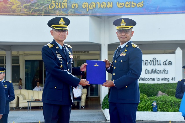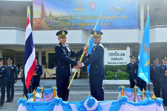 เมื่อวันศุกร์ที่ 3 ตุลาคม 2568 กองบิน 41 ได้จัดพิธีรับ-ส่งหน้าที่ผู้บังคับการกองบิน 41 อย่างสมเกียรติ ณ ท่าอากาศยานทหาร กองบิน 41 โดย นาวาอากาศเอก ปรธร จีนะวัฒน์ ผู้บังคับการกองบิน 41 ท่านเดิม ได้ส่งมอบภารกิจการบังคับบัญชาให้แก่ นาวาอากาศเอก ธีระยุทธ เกื้อสกุล ผู้บังคับการกองบิน 41 ท่านใหม่