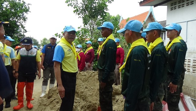โดยพลโท สราวุธ ไชยสิทธิ์ แม่ทัพน้อยที่ 1 พร้อมคณะลงพื้นที่ในครั้งนี้ เพื่อตรวจเยี่ยมกำลังพล ที่ประกอบไปด้วย ป 1 พัน 11 รอ.และ ป 1 พัน 31 รอ.ที่มาช่วยเหลือกั้นแนวกระสอบทราย หลังเขื่อนเจ้าพระยา ระบายน้ำอยู่ที่ 2,400 ลบ.ม./วินาที และมีแนวโน้มว่าจะเพิ่มการระบายน้ำมากขึ้น ทำให้น้ำจากคลองโพงเพง(คลองสาขาแม่น้ำเจ้าพระยา) เพิ่มสูงขึ้น ส่งผลให้แนวกระสอบทรายเดิมไม่สามารถรองรับน้ำที่ท่วมสูงขึ้นได้ ต้องใช้กำลังพลของ ป 1 พัน 11 รอ.และ ป 1 พัน 31 รอ.ช่วยกันเสริมแนวกระสอบทรายเพิ่ม