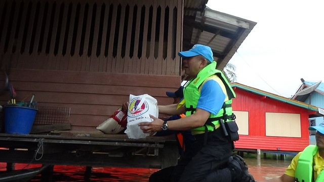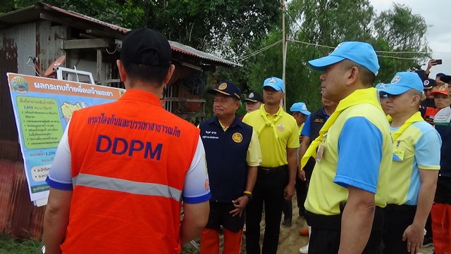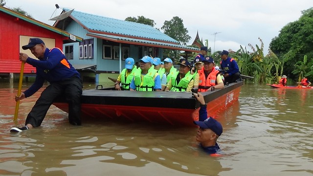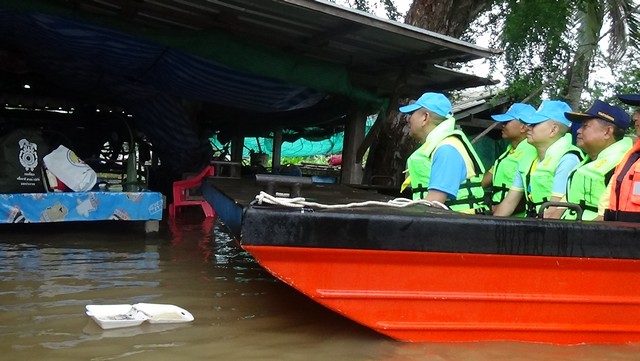 จากนั้นแม่ทัพน้อยที่ 1 พร้อมคณะ เดินทางไปยังหมู่ที่ 4 ตำบลโพงเพง เพื่อลงเรือนำถุงยังชีพของกองทัพบก ไปมอบให้ประชาชนที่ในบ้านที่ถูกน้ำท่วม เข้าออกได้อย่างยากลำบาก โดยพลโท สราวุธ ไชยสิทธิ์ แม่ทัพน้อยที่ 1 ได้พูดคุยกับประชาชนที่บ้านถูกน้ำท่วมพร้อมให้กำลังใจ ว่าทหารอยู่เคียงข้างประชาชนเสมอ