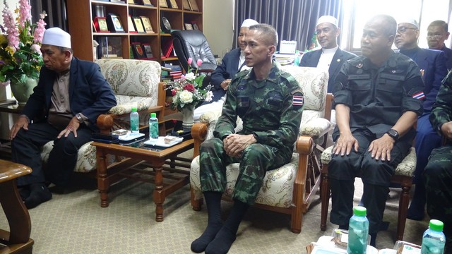 นราธิวาส-”แม่ทัพภาค 4 ‘ป้ายแดง’ พลโท นรธิป โพยนอก เข้านมัสการ ‘ที่ปรึกษาเจ้าคณะภาค 18’ รวมทั้งเจ้าคณะ จ.นราธิวาส ก่อนพบปะ ปธ.ซาฟีอี เจ๊ะเลาะ และ คกก.อิสลามฯ เพื่อแนะนำตัวพร้อมหารือแนวทางการขับเคลื่อนการปฏิบัติ เป้าหมายคืนความสันติสุข จชต.