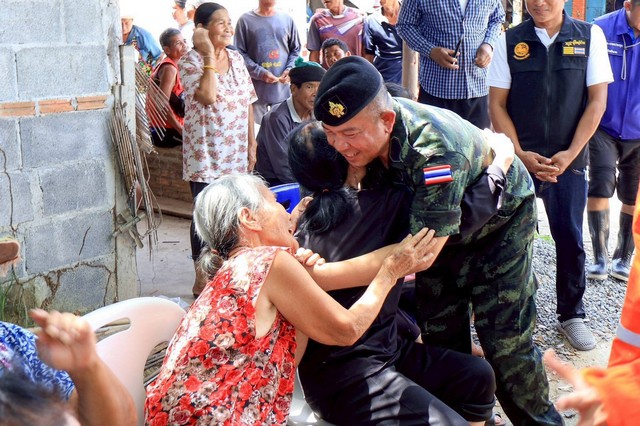 พร้อมทั้งจัดชุดแพทย์เคลื่อนที่จากโรงพยาบาลค่ายสมเด็จพระนเรศวรมหาราช ให้บริการด้านสุขภาพกับประชาชน รวมทั้งได้มีการมอบถุงยังชีพให้กับพี่น้องประชาชนที่ได้รับผลกระทบจากเหตุอุทกภัย จำนวน 150 ชุด และได้พบปะประชาชนเพื่อเป็นการสร้างขวัญกำลังใจให้ผ่านพ้นวิกฤตอันนี้ไปด้วยกัน “ทหารเป็นที่พึ่งของประชาชนในทุกโอกาส”ศูนย์บรรเทาสาธารณภัยมณฑลทหารบกที่ 39