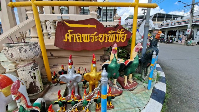 บริเวณโดยรอบศาลจะมีรูปปั้นไก่ รูปปั้นช้าง ม้า ที่ชาวบ้านได้นำมาถวายเป็นเครื่องสักการะในการแก้บนจำนวนมาก
