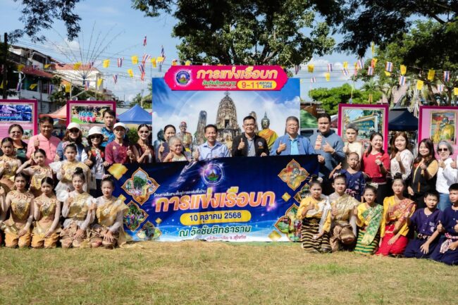 สุโขทัย-เทศบาลศรีสัชนาลัย สืบสานฟื้นฟูการละเล่นพื้นบ้าน “การแข่งเรือบก” วัดชัยสิทธาราม เลขา มท1. ประธานเปิดงาน
