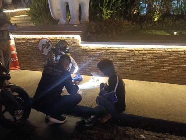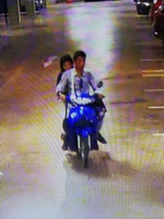 โดยภายในกระเป๋าผ้าสีดำมีกระเป๋าสตางค์พร้อมด้วยเงินสด 2,300 บาท, ขวดน้ำและพาวเวอร์แบงค์สีดำ จากนั้นเจ้าหน้าที่ตำรวจได้ตรวจสอบเส้นทางหลบหนีของคนร้ายโดยตรวจสอบจากกล้องวงจรปิดทราบว่าคนร้ายทั้งสองได้หลบหนีไปตามถนนช้างคลานแล้วหลบหนีเข้าไปในโรงแรมแห่งหนึ่ง เจ้าหน้าที่ตำรวจได้ติดตามอย่างกระชั้นชิดขณะที่ตรวจสอบภายในโรงแรมฯ พบรถจักรยานยนต์ฮอนด้า ดรีม 125 สีน้ำเงิน ไม่ติดแผ่นป้ายทะเบียนจอดอยู่และพบชายและหญิงมีรูปพรรณตรงกันกับข้อมูลผู้ก่อเหตุ เดินอยู่ภายในโรงแรมฯ