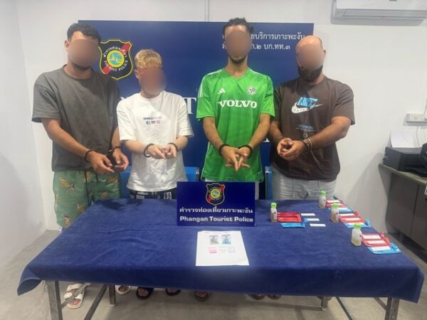 เกาะพะงัน – ตำรวจท่องเที่ยวเกาะพะงัน สนธิกำลังเข้าจับกุมชายชาวอิสราเอล 4 ราย ซึ่งอ้างตัวว่าเป็นทหารที่มาพักรบในประเทศไทย หลังได้รับแจ้งเหตุรบกวนจากการจัดงานปาร์ตี้ส่งเสียงดัง พบของกลางยาเสพติดทั้งยาอีและโคเคน และผลการตรวจปัสสาวะยืนยันพบสารเสพติดในร่างกายทุกคน ถูกแจ้งข้อหา “ร่วมกันครอบครองยาเสพติดเพื่อเสพ” และ “เสพยาเสพติด”