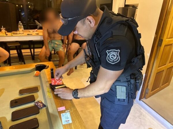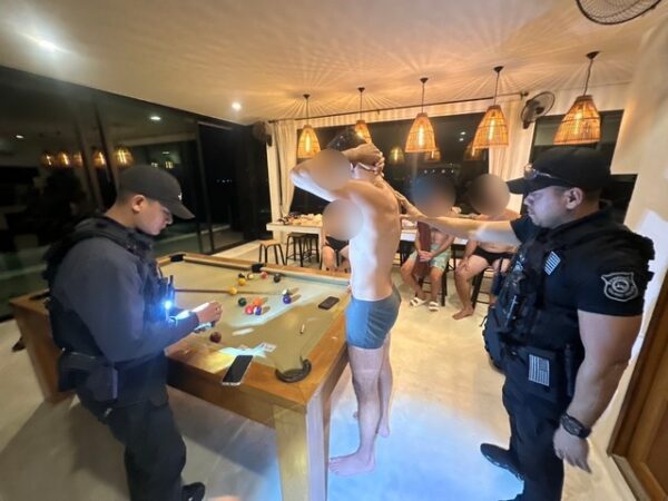 วันนี้ 14 ตุลาคม 2568 ภายใต้การสั่งการของ พล.ต.ท.ศักย์ศิรา เผือกอ่ำ ผบช.ทท. ที่มีนโยบายปราบปรามการกระทำความผิดของชาวต่างชาติ เจ้าหน้าที่ตำรวจชุดจับกุมได้รับแจ้งเหตุร้องเรียนผ่านสายด่วน 1155 จากชาวฝรั่งเศสรายหนึ่งว่า วิลลา “วาเลนติน” ซึ่งอยู่ติดกัน ได้เปิดเพลงและจัดงานปาร์ตี้ส่งเสียงดังรบกวน แม้จะตักเตือนแล้วแต่ก็ยังไม่หยุด เจ้าหน้าที่ตำรวจท่องเที่ยว วันนี้ฯพ.ต.ท. วินิจ บุญชิต สว.ส.ทท.5 กก.2 บก.ทท.3 พร้อมชุดจับกุม (ชุดสืบสวนตำรวจท่องเที่ยว)ได้เข้าตรวจสอบทั้งนี้ ได้ร่วมบูรณาการกับ ฝ่ายปกครองอำเภอเกาะพะงัน ภายใต้การอำนวยการสั่งการของ นายสุริยา บุญพันธ์ นายอำเภอเกาะพะงัน ,นายไพสิฐ ทองเจิม ปลัดอำเภอหัวหน้ากลุ่มงานบริหารงานปกครอง ได้สั่งการให้ชุดจับกุม นำโดย มว.ต.ธนพนธ์ แซ่ตั้ง ปลัดอำเภอฝ่ายความมั่นคง