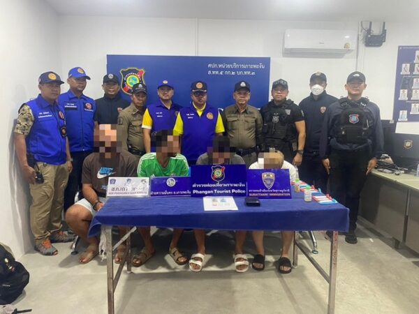 ตำรวจ สภ. เกาะพะงัน นำโดย พ.ต.อ. อภิชาติ จันทร์สำเร็จ ผกก.สภ.เกาะพะงันนำทีมชุดสืบสวน,สวป,20 , ตรวจคนเข้าเมืองเกาะพะงัน ,พ.ต.ท.หญิง สงวนทรัพย์ ลาภสนอง สว.ตม.จว.สุราษฎร์ธานี, ร.ต.อ.สิริวัฒน์ สมหวัง รอง สว.ตม.จว.สุราษฏร์ธานี