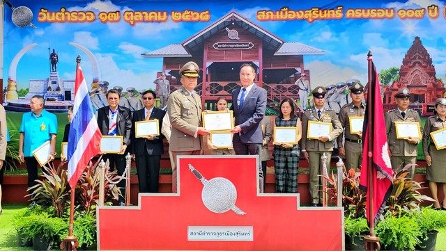 ซึ่งการดำเนินการดังกล่าว จำเป็นต้องได้รับความร่วมมือ และสนับสนุนช่วยเหลือจากภาครัฐ ภาคเอกชน และภาคประชาชน ที่ผ่านมา มีข้าราชการตำรวจหลายนายในสังกัดตำรวจภูธรจังหวัดสุรินทร์ ได้ปฏิบัติหน้าที่ด้วยความมุ่งมั่น เสียสละ และอดทน ทำให้ภารกิจงานในหน้าที่ตำรวจประสบความสำเร็จ เสริมสร้างภาพลักษณ์แก่ตำรวจภูธรจังหวัดสุรินทร์ และมีหมู่บ้านหรือชุมชนที่ให้ความร่วมมือและสนับสนุนช่วยเหลือด้านต่างๆ ในภารกิจหน้าที่ตำรวจในการรักษาความสงบเรียบร้อยและป้องกันปราบปรามอาชญากรรม จนทำให้สถิติการเกิดอาชญากรรมต่างๆ ลดลงเป็นอย่างมาก