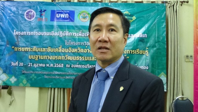 เมื่อเวลา 10.00 น.ของวันนี้(20ตค.68)ที่องค์การบริหารส่วนตำบลหลาดใหม่ ตำบลตลาดใหม่ อำเภอวิเศษชัยชาญ จังหวัดอ่างทอง นายทัศนัย สุธาพจน์ รองผู้ว่าราชการจังหวัดอ่างทอง เป็นประธานเปิดโครงการการอบรมเชิงปฏิบัติการเพื่อเพิ่มศักยภาพด้านการแสดงลิเก โดยมีรองศาสตราจารย์ ดร.ประสพชัย พลุนนท รองอธิการบดีฝ่ายวิจัยและวิสาหกิจ มหาวิทยาลัยศิลปากร พร้อมคณะร่วมงาน