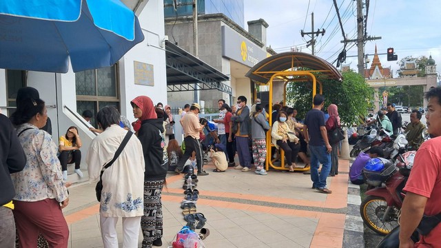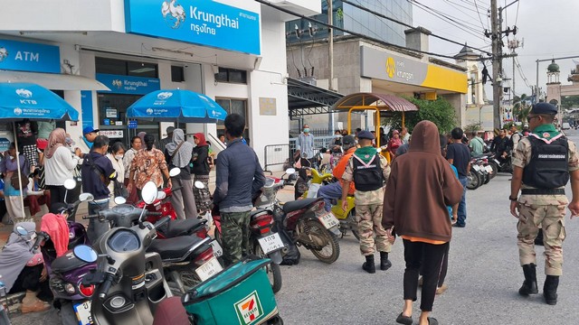 เบตง ธนาคารกรุงไทย สาขาเบตง คึกคัก ประชาชนต่อแถวตั้งแต่เช้า ตี 5 รอลงทะเบียน คนละครึ่งพลัส