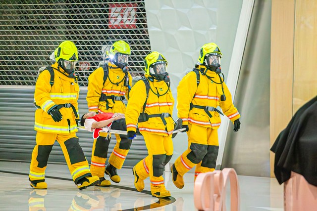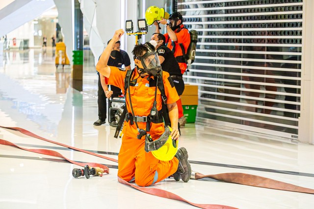 การฝึกซ้อมจำลองสถานการณ์เหตุเพลิงไหม้บริเวณชั้น G ของศูนย์การค้า
