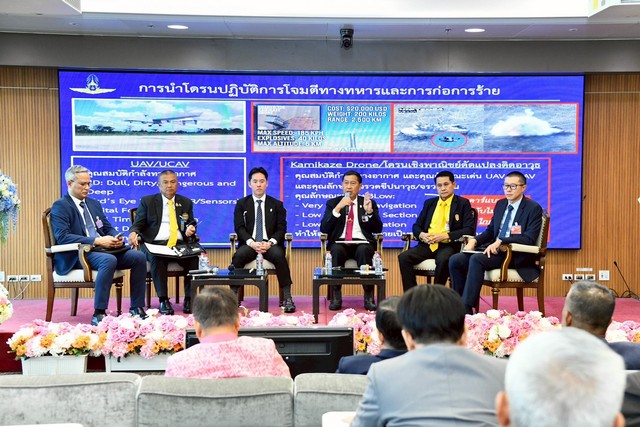 ส่วนในช่วงบ่าย มีจัดการอภิปราย หัวข้อ “หมุดหมายอุตสาหกรรมป้องกันประเทศของไทย” ได้รับเกียรติจากวิทยากรผู้ทรงคุณวุฒิ ประกอบด้วย พลอากาศเอก มานัต วงษ์วาทย์ นายกสมาคมอุตสาหกรรมเพื่อการป้องกันประเทศ นายสุรเดช ตัณฑ์ไพบูลย์ นายกสมาคมต่อเรือและซ่อมเรือไทย และ CEO บริษัท ASIMAR พลอากาศเอก สุพิจจารณ์ ธรรมวาทะเสรี อดีตรองเสนาธิการทหาร กองบัญชาการกองทัพไทย ดร.กตัญญู กลับสุวรรณ นายกสมาคม Smart Cities Thailand และผู้เชี่ยวชาญเทคโนโลยีและนวัตกรรม นายกฤต กุลหิรัญ กรรมการผู้จัดการใหญ่ บริษัท ชัยเสรี เม็ททอล แอนด์ รับเบอร์ จำกัด นายภาคย์ บุญยุบล ผู้ช่วยกรรมการผู้อำนวยการอาวุโส ส่วนงานเทคโนโลยีและปฏิบัติการดาวเทียม บริษัท ไทยคม จำกัด (มหาชน)