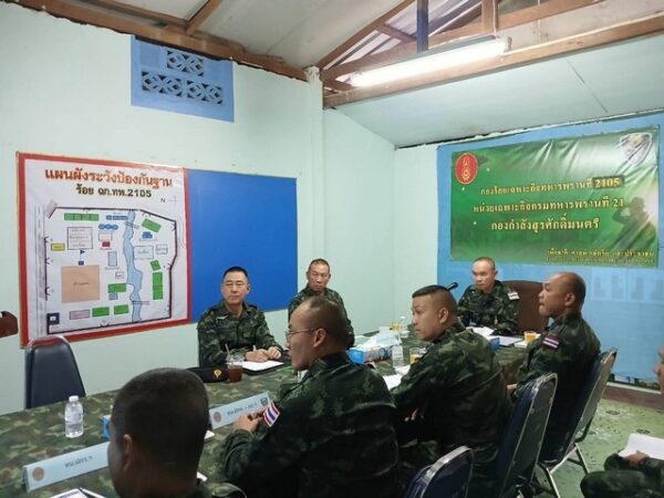 เมื่อวันที่ 24 ตุลาคม 2568 เวลา 14.30 ที่กองบังคับการกองร้อยเฉพาะกิจทหารพรานที่ 2105 หน่วยเฉพาะกิจกรมทหารพรานที่ 21 บ้านบุ่งอุทัย ตำบลนาสีนวน อำเภอเมือง จังหวัดมุกดาหาร ร้อยโท วันชาติ เหมือนปืน ผู้บังคับกองร้อยเฉพาะกิจทหารพรานที่ 2105 หน่วยเฉพาะกิจกรมทหารพรานที่ 21 พร้อมกำลังพลให้การต้อนรับ พลตรีมงคล หอทอง ผู้บัญชาการกองกำลังสุรศักดิ์มนตรี และพันเอกสุภัทร ชูตินันทน์ ผู้บังคับการกองบังคับการควบคุมที่ 1 (ร.3) กองกำลังสุรศักดิ์มนตรี(ผบ.บก.ควบคุมที่ 1)