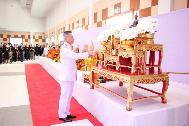 จากนั้น ผู้ว่าราชการจังหวัดลำพูน ประธานในพิธีจุดเทียนส่องธรรม จุดธูปเทียนเครื่องทองน้อย เบื้องหน้าพระฉายาลักษณ์ และกราบถวายสักการะพระฉายาลักษณ์ จุดธูปเทียนเครื่องทองน้อย ฟังธรรม เจ้าหน้าที่ปฏิบัติพิธีสงฆ์อาราธนาศีล พระสงฆ์ให้ศีลเจ้าหน้าที่ปฏิบัติพิธีสงฆ์อาราธนาธรรม พระสงฆ์แสดงธรรมเทศนากัณฑ์ 1 จบ จากนั้น ผู้ว่าราชการจังหวัดลำพูน จุดธูป เทียน หน้ากระบะมุก พระสงฆ์สวดธรรมคาถา จำนวน 4 รูป ถวายเครื่องไทยธรรมกัณฑ์เทศน์พระสงฆ์แสดงพระธรรมเทศนา และถวายเครื่องไทยธรรมพระสงฆ์สวดธรรมคาถา เจ้าหน้าที่ปฏิบัติพิธีสงฆ์ลาดผ้ารองโยงและลาดพระภูษาโยง ทอดผ้าไตรบังสุกุล พระสงฆ์สดับปกรณ์ จำนวน 5 รูป พระสงฆ์ อนุโมทนา ผู้ว่าราชการจังหวัดลำพูน กรวดน้ำรับพร ถือเป็นเสร็จพิธี..