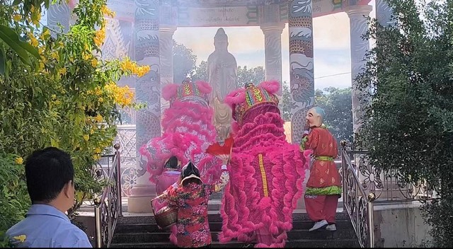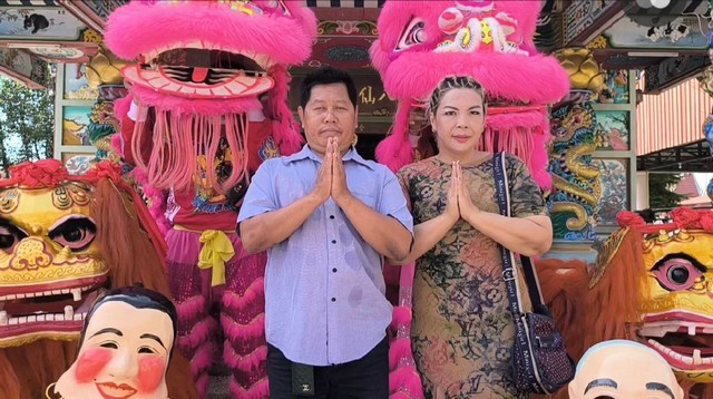 นครนายก – นักท่องเที่ยวนำสิงโตมาแก้บนองค์หลวงพ่อเสาร์ 5 และสิ่งศักดิ์สิทธิ์ในวัดธรรมปัญญาพร้อมจุดประทัดขอเลขเด็ด