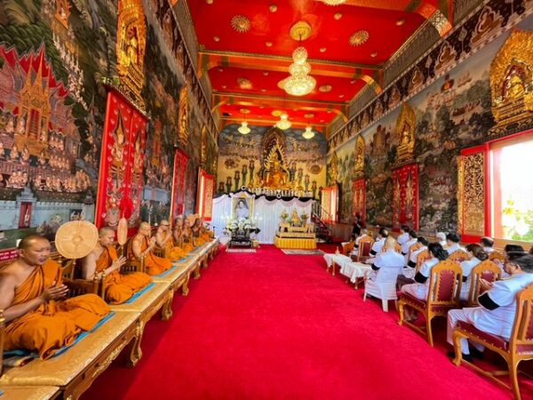 โดยมี พระวชิรคณาทร (เจ้าคุณแจ้) เจ้าอาวาสวัดบางพลีใหญ่กลาง เป็นประธานฝ่ายสงฆ์ นำคณะสงฆ์ 10 รูป ประกอบพิธีสวดเจริญพระพุทธมนต์ จากนั้น ได้ร่วมกันถวายผ้าไตรแด่พระสงฆ์ถวายเป็นพระราชกุศล แด่สมเด็จพระนางเจ้าสิริกิติ์ พระบรมราชินีนาถ พระบรมราชชนนีพันปีหลวง