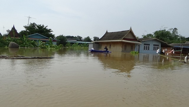 อ่างทอง -หัวหน้าพรรคเพื่อไทย ลงเรือมอบถุงยังชีพ พร้อมเร่งรัฐบาลจัดการน้ำอย่างเป็นระบบ