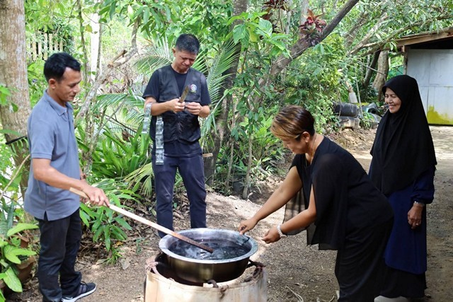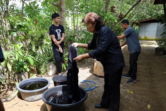 กระบี่-สำนักงานพัฒนาชุมชนจังหวัดกระบี่ ร่วมกับเครือข่าย OTOP จังหวัดกระบี่ จัดกิจกรรมย้อมผ้าสีดำ ถวายเป็นพระราชกุศล เพื่อให้ประชาชนได้สวมใส่แสดงความอาลัยสมเด็จพระพันปีหลวง