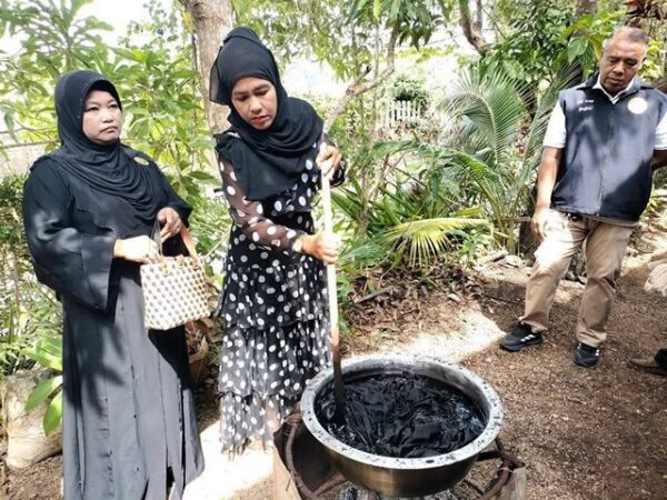 ประธานกลุ่มอันดามันบาติกกระบี่ กล่าวด้วยว่า ส่วนกิจกรรมการย้อมผ้าสีดำนั้น ผ้าสีต่าง ๆ ที่เอามาย้อมให้เป็นสีดำถ้าจะให้ติดดีและทนต้องเป็นผ้าฝ้าย หรือ Cotton ลินิน เรยอน หรือผ้าไหม แต่ถ้าเป็นผ้าเส้นใยสังเคราะห์ หรือโพลีเอสเตอร์ ไนลอน จะย้อมติดไม่ดี ไม่คงทน สำหรับกระบวนการย้อมจะใช้สีธรรมชาติ ที่ความร้อนของน้ำประมาณ 80-90 องศาเซลเซียส ใช้เวลาประมาณ 10-20 นาที จากนั้นก็จะนำไปซักล้าง แล้วตากให้แห้งก็สามารถนำไปรีด แล้วสวมใส่ได้ตามปกติ…