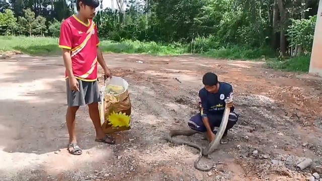 เจ้าหน้าที่ต้องใช้ความระมัดระวังในการจับซึ่งต่อมา เจ้าหน้าที่สามารถจับหางงูจงอางยักษ์ไว้ได้รีบลากออกมาที่โล่ง ก่อนใช้มือเปล่า จับหัวงูจงอางยักษ์ไว้ได้ นำมาวัดได้ยาว 4.03 เมตร จึงรีบนำใส่กระสอบ เตรียมนำไปปล่อยคืนสู่ป่าธรรมชาติต่อไป แน่นอนชาวบ้านที่มายืนดูต่างนำเอ่บ้านเลขที่มาเป็นเลขเด็ดสลากกินแบ่งรัฐบาลงวดนี้ คือเลข 447 472