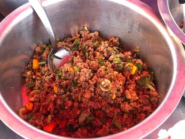 นางพรจิตร กล่าวต่อว่า สำหรับเมนูอาหารที่นำมาขายแต่ละวันจะหมุนเวียนสับเปลี่ยนกันไป เฉลี่ยวันมี 18- 20 เมนู มีทั้งอาหารอีสาน เช่น ลาบหมูสูตรโบราณ ลาบปลา ซุปหน่อไม้ ซุปต่างๆ แก่งผักขี้เหล็ก นึ่งปลา แกงอ่อม แกงไข่ผำ หมกหมูใส่ปลี หมกหน่อไม้ ส้มผัก หมกปิ้งลาบปลาตอง ปิ้งปลาแก้ว กลั่นไก่บ้าน และอาหารอีสานต่างๆ ส่วนอาหารไทยจะมีแกงเผ็ด และผัดต่างๆ เช่นไข่พะโล้ แกงส้ม แกงเขียวหวาน ต้มจืด ผัดผัก และแกงต่างๆ