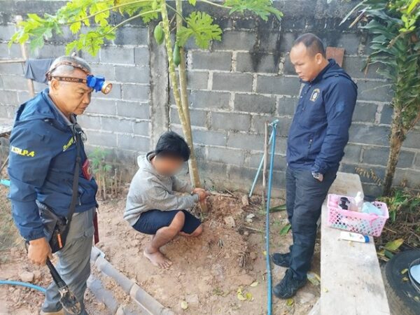 จากการตรวจค้นพบนายพงษ์ศักดิ์ หรือต้น (นามสมมุติ) อายุ 28 ปี แสดงตัวเป็นผู้ครอบครองสถานที่หลังดังกล่าว เจ้าหน้าที่จึงได้แสดงหมายค้นให้นายพงษ์ศักดิ์ฯดู พร้อมอ่านข้อความตามหมายค้นให้นายพงษ์ศักดิ์ฯฟัง ซึ่งจากการตรวจค้นบริเวณบ้านพบยาบ้า สีน้ำเงิน 2 ถุง สีชมพู 1 ถุง บรรจุอยู่ในถุงพลาสติกสีขาว รัดรวมกันด้วยหนังยางอีกชั้นหนึ่งฝังดินอยู่ใต้โต๊ะวางของใช้ใต้หน้าต่างข้างตัวบ้าน ซึ่งนายพงษ์ศักดิ์ฯ รับว่าเป็นยาบ้าของตนจริง นอกจากนี้ยังพบยาบ้าอีก 2 เม็ด ที่นายพงษ์ศักดิ์ฯ โยนทิ้งไว้ รวมยาบ้าทั้งหมด 608 เม็ด จึงตรวจยึดไว้เป็นของกลาง และนำตัวมาสอบสวนที่โรงพัก