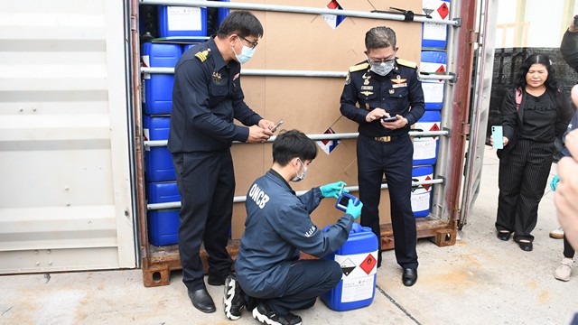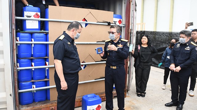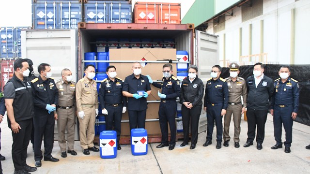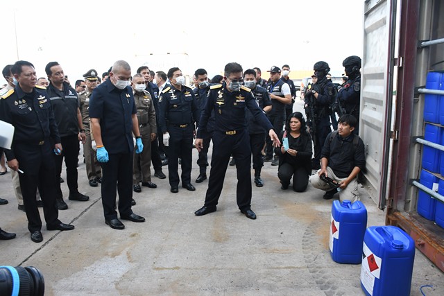 ชลบุรี-บุกสกัดเคมีอันตราย 22 ตัน! ป.ป.ส.–ศุลกากร–ดีอี–ปส. ผนึกกำลังยึด ‘กรดอะซีติก’ ล็อตใหญ่ ปิดเส้นทางผลิตยาบ้า–ไอซ์–เฮโรอีน มูลค่ามหาศาล ที่ท่าเรือแหลมฉบัง
