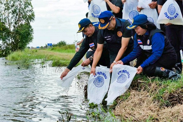 ลพบุรี น้ำหลากมา ปล่อยปลาเข้าทุ่ง “15.1 ล้านชีวิต ณ ทุ่งชัยนาท-ป่าสัก เพื่อเพิ่มปริมาณสัตว์น้ำในแหล่งน้ำธรรมชาติ ให้กลับมาอุดมสมบูรณ์ สร้างความยั่งยืนให้กับระบบนิเวศ
