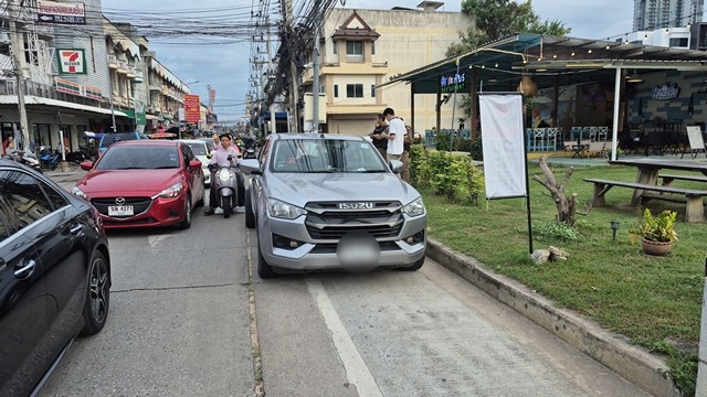 ชลบุรี-หนุ่มบาร์โฮสเมาขับ จอดหลับกลางถนน รถติดยาวเหยียด