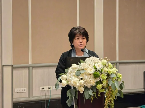 การวิจัยฯ กล่าวรายงาน ผู้บริหารจากองค์กรต่างประเทศและประเทศในอาเซียน, ผู้แทนจากเมืองแห่งการเรียนรู้, ผู้ทรงคุณวุฒิจาก UNESCO, คณาจารย์ นักวิชาการ และแขกผู้มีเกียรติทุกท่านณ โรงแรม ยู นิมมาน เชียงใหม่