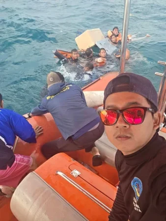 ลอยคออยู่กลางทะเล ห่างจากชายฝั่งเมืองพัทยา ประมาณ 15 ไมล์ทะเล (หรือประมาณ 30 กม.) ซึ่งทั้งหมดอยู่ในสภาพอิดโรย หนาวสั่น ทีมกู้ภัยฯ ได้ทำการช่วยเหลือและอยู่ในระหว่างการพาตัวกลับเข้าฝั่ง