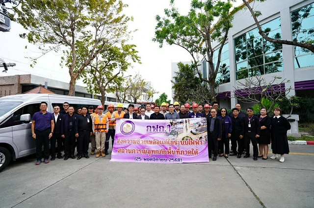 วันที่ 25 พฤศจิกายน 2568 เวลา 14.30 น. นายอารมณ์ สิงห์เงิน ผู้ช่วยผู้ว่าการ การไฟฟ้าส่วนภูมิภาค เขต 1 (ภาคกลาง) จังหวัดพระนครศรีอยุธยา พร้อมผู้บริหารพนักงาน และลูกจ้าง สนับสนุนเรือ จำนวน 4 ลำ รถเครน 6 ตัน จำนวน 2 คัน เครื่องกำเนิดไฟฟ้า 5 กิโลวัตต์ จำนวน 2 เครื่อง พร้อมทีมงานช่วยเหลือแก้ไขระบบไฟฟ้าจำนวน 17 คน เพื่อสนับสนุนการปฏิบัติงานด้านระบบไฟฟ้าในพื้นที่ภาคใต้ที่ได้รับผลกระทบจากสถานการณ์น้ำท่วมในหลายจังหวัด