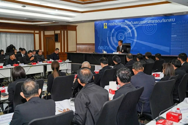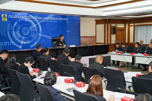 พร้อมทั้งผู้บริหาร ปภ. และผู้แทนหน่วยงานที่เกี่ยวข้อง เข้าร่วมประชุมโดยพร้อมเพียงกัน เพื่อร่วมกันหารือมาตรการการเตรียมพร้อมรับมือฝุ่น PM2.5 ในทุกมิติ พร้อมกำชับทุกหน่วยงานบูรณาการทำงานร่วมกันอย่างมีเอกภาพ มุ่งใช้กลไกในระดับท้องถิ่น – ท้องที่ เพื่อให้การแก้ไขปัญหาฝุ่น PM2.5 เกิดประสิทธิภาพทั้งในระยะสั้นและระยะยาว และสามารถลดค่าฝุ่น PM2.5 ได้จริง
