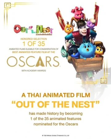 A landmark achievement for the Thai animation industry: “Out of the Nest” is the first animated feature film from Thailand ever to qualify for the competition. The film, from T&B Media Global (Thailand) Company Limited, has officially qualified for the 98th Academy Awards (Oscars), having been included in the formal list of 35 eligible titles competing for the Best Animated Feature Film category. This momentous recognition underscores the film’s high-caliber production quality, creative content, original musical score, and distinctive character design.
