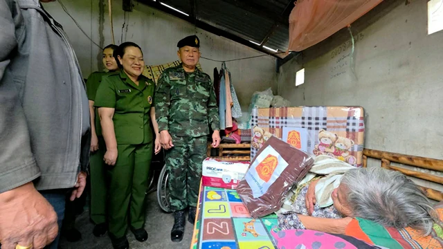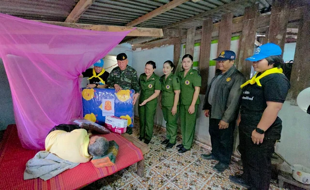 (สุรินทร์)ผบ.มทบ.25 มอบผ้าห่มกันหนาวแก่ผู้สูงอายุ และผู้ป่วยติดเตียงพื้นที่ชายแดนไทย-กัมพูชา