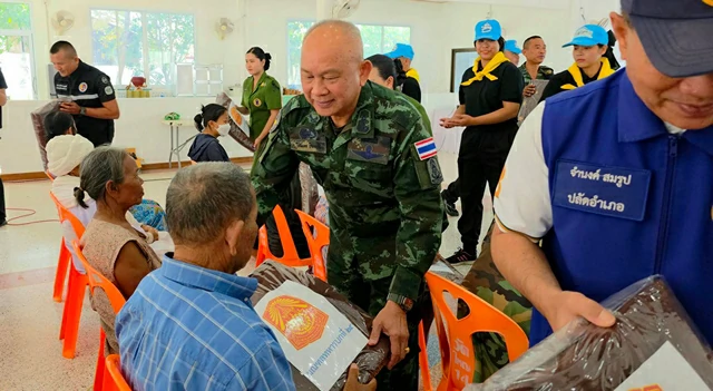 พลตรี ไชยนครกิจคณะ ผู้บัญชาการมณฑลทหารบกที่ 25 กล่าวว่า ด้วยความห่วงใยจากผู้บัญชาการทหารบก ที่ในช่วงนี้เข้าสู่อากาศหนาว จึงนำผ้าห่มมามอบให้พ่อแม่พี่น้อง จากสถานการณ์ที่ผ่านมา ในห้วงที่มีการสู้รบที่ผ่านมา ก็มีความห่วงใยประชาชนในพื้นที่เช่นกัน ที่ผ่านมาก็เคยไปเยี่ยมประชาชนที่ศูนย์พักพิง วันนี้ได้เดินทางมาให้ความอบอุ่นแก่พ่อแม่พี่น้อง รวมทั้งที่นอนก็มอบให้ผู้ป่วยติดเตียง ในศักยภาพที่กองทัพบกที่พอจะช่วยเหลือพ่อแม่พี่น้องได้ กองทัพบกยังห่วงใยประชาชน และไม่ต้องห่วงสถานการณ์ในขณะนี้ เราก็พร้อม และพร้อมดูแลประชาชนอย่างดีที่สุด