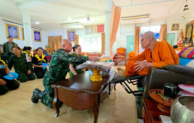 วันที่ 27 พฤศจิกายน 2568 ที่ วัดพัฒนาธรรมาราม หรือ วัดบ้านด่านช่องจอม ตำบลด่าน อำเภกาบเชิง จังหวัดสุรินทร์ พลตรีไชยนคร กิจคณะ ผู้บัญชาการมณฑลทหารบกที่ 25 (ผบ.มทบ.25) ได้ถวายผ้าห่ม แด่หลวงปู่เฮง ปภาโส วัย 98 ปี เจ้าอาวาสวัดบ้านด่านช่องจอม เกจิดังอีสานใต้ ก่อนจะเป็นประธานมอบผ้าห่มกันหนาวแก่ประชาชนหมู่บ้านด่าน ที่ได้รับผลกระทบจากภัยหนาว และได้รับผลกระทบจากเหตุการณ์การปะทะในพื้นที่ ชายแดนไทย – กัมพูชา ที่ผ่านมา