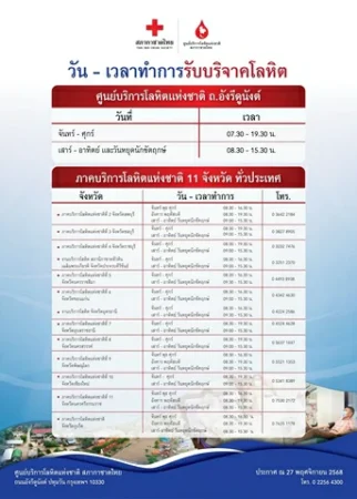 ฝ่ายจัดหาผู้บริจาคโลหิตและสื่อสารองค์กร ศูนย์บริการโลหิตแห่งชาติ สภากาชาดไทย โทรศัพท์ 0 2256 4300, 0 2263 9600-99 ต่อ 1760, 1761