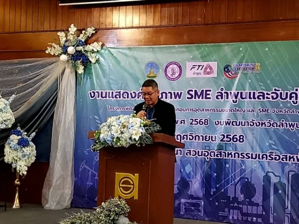 ตามที่จังหวัดลำพูน ได้มอบหมายให้สำนักงานอุตสาหกรรมจังหวัดลำพูน ดำเนินโครงการ ดังกล่าว โดยมีวัตถุประสงค์เพื่อพัฒนาศักยภาพ และสร้างเครือข่ายธุรกิจระหว่างผู้ประกอบการ อุตสาหกรรมรายใหญ่และ SME จังหวัดลำพูน เริ่มดำเนินการมาตั้งแต่ 1 ตุลาคม 2568 จนถึงวันนี้(28 พ.ย.)เป็นการดำเนินกิจกรรมสุดท้าย โครงการประกอบด้วย 4 กิจกรรม ได้แก่ กิจกรรมการประชาสัมพันธ์ รับสมัคร และคัดเลือกสถานประกอบการเข้าร่วม โครงการฯ โดยมีผู้ประกอบการ SME ผ่านการคัดเลือกเข้าร่วม จำนวน 21 ราย กิจกรรมสร้างเครือข่ายสถานประกอบการอุตสาหกรรมขนาดใหญ่และ SME จังหวัดลำพูน โดยมีสถานประกอบอุตสาหกรรมขนาดใหญ่ เข้าร่วม 7 ราย และ SME 21 ราย