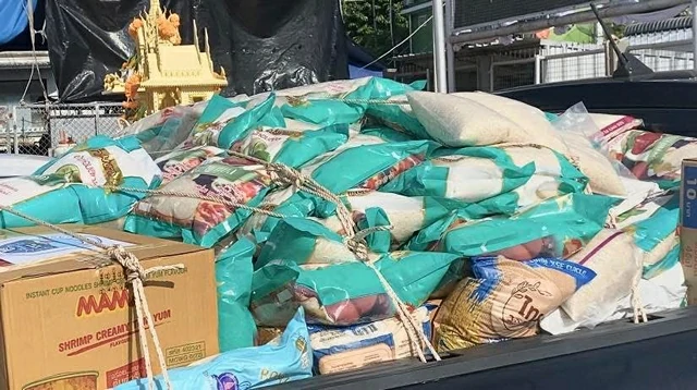 ประชาชนในหลายพื้นที่ร่วมบริจาคสิ่งของจำนวนมาก อาทิ เสื้อผ้า ปลากระป๋อง บะหมี่กึ่งสำเร็จรูป น้ำดื่ม ข้าวสาร มุ้งกลางนอน ปลาเค็ม และยาเวชภัณฑ์ต่างๆ โดยได้มีการจัดขบวนรถยนต์จำนวน 6 คัน เพื่อนำสิ่งของทั้งหมดส่งต่อไปยังสมาคมสว่างบุญช่วยเหลือธรรมสถานตราด เพื่อแยกประเภทสิ่งของและกระจายช่วยเหลือประชาชนในทุกพื้นที่ที่ได้รับความเดือดร้อนจากน้ำท่วมต่อไป