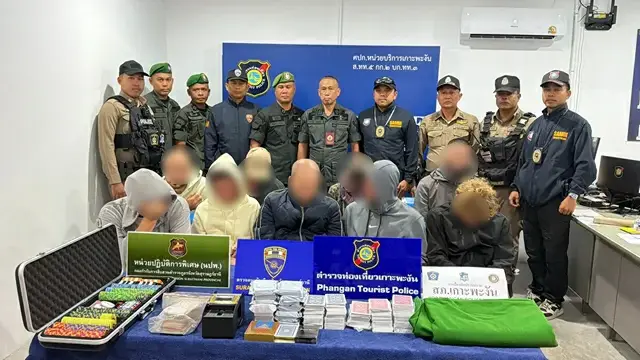 ตร.ทท.บูรณาการบุกทลายบ่อน รวบแก๊งต่างชาติ 10 คน ลักลอบเล่นพนันโป๊กเกอร์กลางเกาะพะงัน ยึดเงินสดเกือบ 1.4 แสนบาท