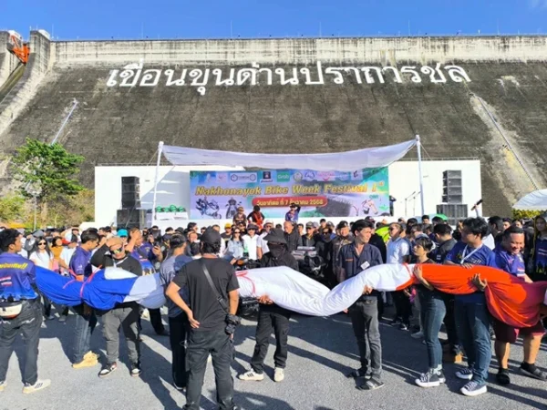 นครนายก – สมาคมส่งเสริมการท่องเที่ยวนครนายก จัดกิจกรรมส่งเสริมการท่อง เที่ยวจังหวัดนครนายก Nakhonnayok Bike Week Festival 1 แปรอักษร อัญเชิญธงชาติไทยผืนใหญ่ยาว 100 เมตรกว้าง 20 เมตร