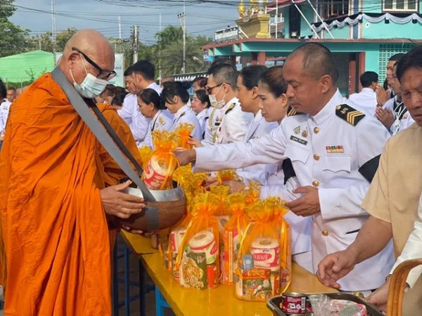 พลเรือตรี กิติศักดิ์ สายนุช ผู้อำนวยการโรงพยาบาลสมเด็จพระนางเจ้าสิริกิติ์ กรมแพทย์ทหารเรือ มอบหมายให้ นาวาเอกกฤชทอง แท่งทอง หัวหน้ากลุ่มงานห้องตรวจโรคประกันสังคมและผู้ป่วยทั่วไป โรงพยาบาลสมเด็จพระนางเจ้าสิริกิติ์ฯ เป็นผู้แทน พร้อมด้วยกำลังพล เข้าร่วมพิธีตักบาตรข้าวสารอาหารแห้ง และพิธีวางพานพุ่มดอกไม้ เนื่องในวันคล้ายวันพระบรมราชสมภพ พระบาทสมเด็จพระบรมชนกาธิเบศร มหาภูมิพลอดุลยเดชมหาราช บรมนาถบพิตร วันชาติ และวันพ่อแห่งชาติ 5 ธันวาคม 2568 ณ ศาลาประชาคม ที่ว่าการอำเภอสัตหีบ จ.ชลบุรี