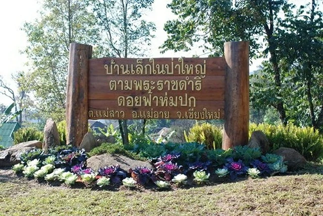 สมเด็จพระนางเจ้าสิริกิติ์ พระบรมราชินีนาถ พระบรมราชชนนีพันปีหลวง เสด็จพระราชดำเนินทอดพระเนตรพื้นที่แนวชายแดน และพระราชทานถุงยังชีพแก่ทหารที่ปฏิบัติหน้าที่อยู่บริเวณดอยดำ ตำบลเมืองแหง อำเภอเวียงแหง จังหวัดเชียงใหม่ เมื่อวันที่ 21 มกราคม 2545 ทรงพบว่าพื้นที่บริเวณดังกล่าว ได้ถูกบุกรุกแผ้วถางป่าเป็นบริเวณกว้าง ประกอบกับมีปัญหาด้านความมั่นคงตามแนวชายแดน จึงทรงมีพระราชดำริให้จัดตั้งหมู่บ้านขึ้นในลักษณะโครงการบ้านเล็กในป่าใหญ่ บริเวณแหล่งต้นน้ำลำธาร โดยให้ “คนอยู่กับป่า” ได้อย่างผสมกลมกลืนและยั่งยืน และมีพระราชเสาวนีย์ให้สำนักพระราชวัง ประสานกับ กองทัพภาคที่ 3, กรมป่าไม้, กรมชลประทาน และส่วนราชการที่เกี่ยวข้องต่อไป
