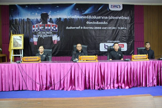 จังหวัดร้อยเอ็ดประกาศเจตนารมณ์ “ไม่ทนต่อการทุจริต” พร้อมส่วนกลาง โดยมีนายอนุทิน ชาญวีรกูล นายกรัฐมนตรี เป็นประธานผ่านถ่ายทอดสดจากกรุงเทพฯ ภายใต้แนวคิด “HERO OF THE TRUTH: ร่วมหยุดคอร์รัปชัน” เพื่อย้ำให้การทำงานของภาครัฐโปร่งใสและตรวจสอบได้จ้า