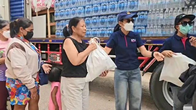 โดยมีเจ้าหน้าที่ของหน่วยงานเอกชนเป็นผู้อำนวยความสะดวก และแจกถุงยังชีพด้วยเจ้าหน้าที่ของตนเองเป็นไปด้วยความเรียบร้อย