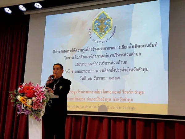 สำนักงานคณะกรรมการการเลือกตั้งประจำจังหวัดลำพูน(สนง.กกต.จว.ลำพูน) จัดอบรมให้ความรู้เพื่อสร้างบรรยากาศการเลือกตั้งเชิงสมานฉันท์ ในการเลือกตั้งสมาชิกสภาองค์การบริหารส่วนตำบล และ นายกองค์การบริหารส่วนตำบล รุ่นที่ 3 วันนี้(12 ธ.ค. 68) ณ โรงแรมแกรนด์ ปา โฮเทล แอนด์ รีสอร์ท ลำพูน ตำบลเวียงยอง อำเภอเมืองลำพูน จังหวัดลำพูน