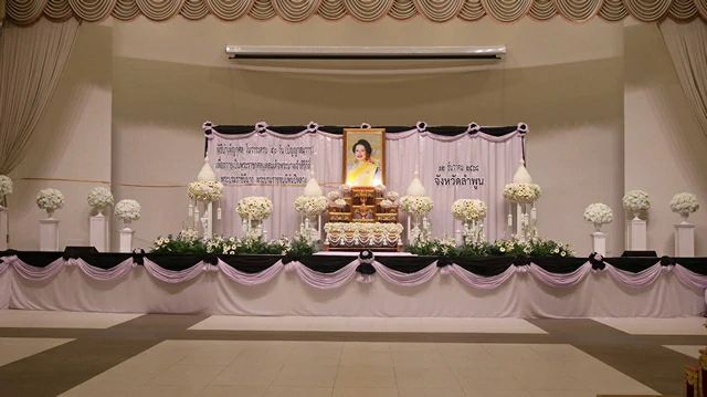 ภายในพิธีฯ ผู้ว่าราชการจังหวัดลำพูน ประธานพิธีฯ ได้จุดธูปเทียนบูชาพระรัตนตรัย จากนั้น จุดธูปเทียนเครื่องทองน้อย เบื้องหน้าพระฉายาลักษณ์ และกราบถวายสักการะพระฉายาลักษณ์ เจ้าหน้าที่ปฏิบัติพิธีสงฆ์อาราธนาพระปริตร พระสงฆ์ทรงสมณศักดิ์ จำนวน 10 รูป สวดพระพุทธมนต์ จบแล้ว เจ้าหน้าที่ปฏิบัติพิธีสงฆ์ลาดผ้ารองโยงและลาดพระภูษาโยง ทอดผ้าไตรบังสุกุล พระสงฆ์ทรงสมณศักดิ์สดับปกรณ์ พระสงฆ์ อนุโมทนา