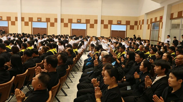 วันนี้( 12 ธ.ค. 68 ) เวลา 17 นาฬิกา ที่หอประชุมจังหวัดลำพูน ศาลากลางจังหวัดลำพูน นายปิยพงศ์ ชูวงศ์ ผู้ว่าราชการจังหวัดลำพูน เป็นประธานในพิธีบำเพ็ญกุศลปัญญาสมวาร(50 วัน) อุทิศถวายพระราชกุศล สมเด็จพระนางเจ้าสิริกิติ์ พระบรมราชินีนาถ พระบรมราชชนนีพันปีหลวง โดยมี นางณัษฐพร ชูวงศ์ ประธานแม่บ้านมหาดไทยจังหวัดลำพูน นายโยธิน ประสงค์ความดี รองผู้ว่าราชการจังหวัดลำพูน หัวหน้าศาล ทหาร ตำรวจ หัวหน้าส่วนราชการ ทั้งภาครัฐ ภาคเอกชน และ ประชาชนทุกหมู่เหล่า ร่วมพิธีอย่างพร้อมเพรียง